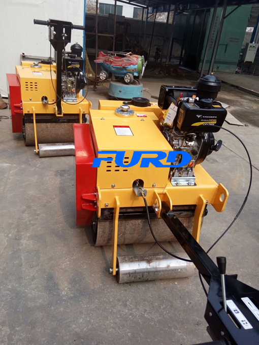 手扶压路机、座驾压路机、路面开槽机开出厂房,准备发货。