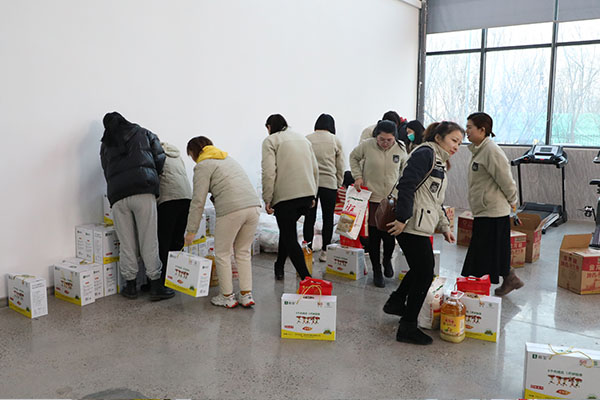 让大家看到了未来的工作环境,不仅提高了广大员工的工作积极性,而且让全体员工对集团未来的发展有了更多信心,也进一步坚定了员工扎根“福瑞得”的决心。各部门依次有序到现场领取春节福利。当大家从领导手中接过一箱箱沉甸甸的福利物品时,内心深深地感受到了公司领导对每一位员工的关爱之情。一箱箱福利代表着集团向每一位员工及员工家人送去的真挚问候与祝福,公司上下洋溢在一片温馨和谐的喜庆气氛中。