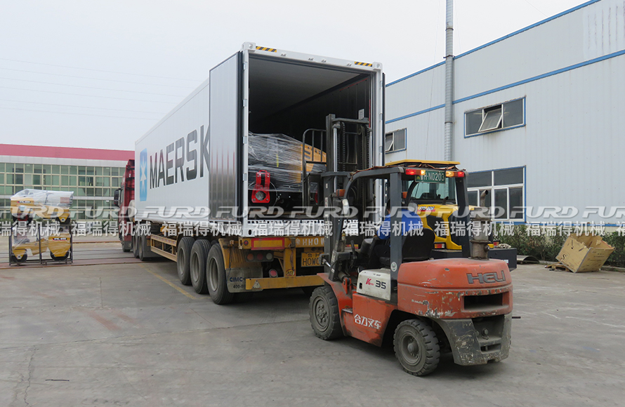 3月19日,福瑞得机械装柜出口一批座驾压路机。