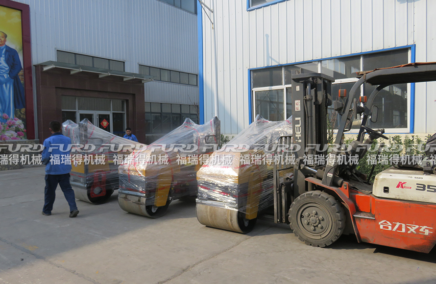 福瑞得机械3台座驾双钢轮压路机打包发往浙江