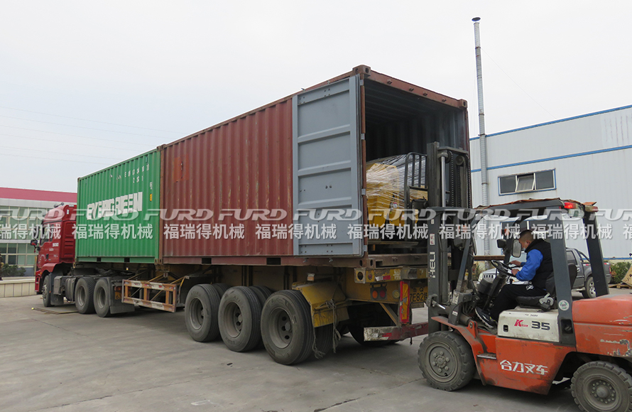 福瑞得机械6台1吨座驾压路机打包装柜出口加拿大