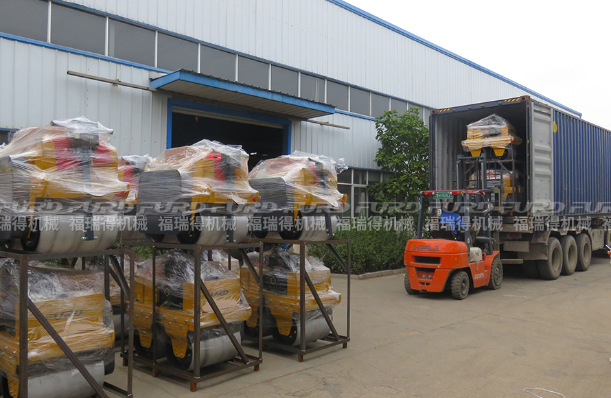 10月25日,福瑞得机械46台手扶双钢轮压路机装车出口墨西哥。