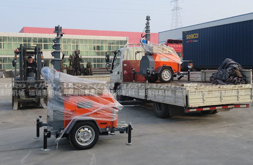 12月16日 福瑞得机械3台7米移动灯车打包发往菏泽市。福瑞得机械生产的移动灯车适用于各种室内、外工作场所,满足煤炭行业、电力、冶金、铁路、钢铁、船舶、化工及大型企业照明的使用需要。
