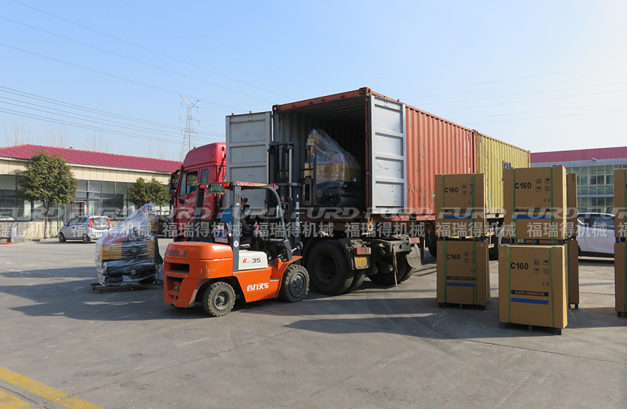 2月22日,福瑞得机械5台手扶压路机和18台平板夯打包装车发往埃塞俄比亚。