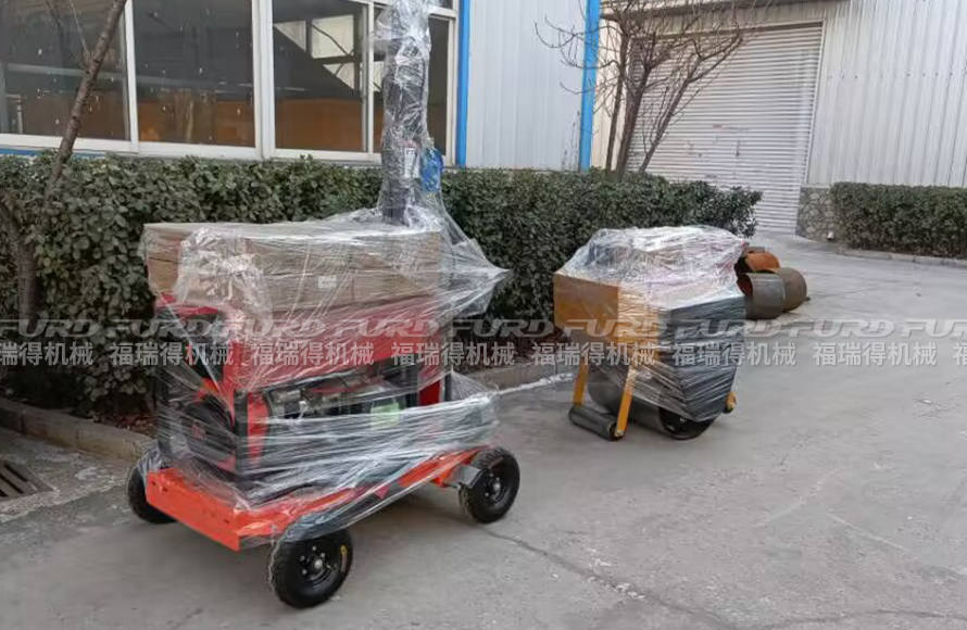 福瑞得1台手扶压路机和移动灯车打包发往绍兴