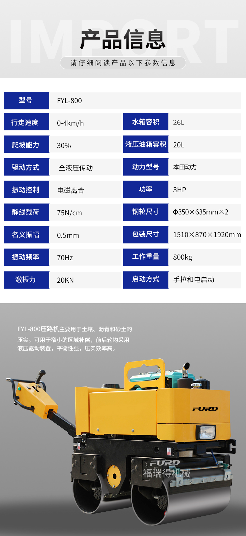 FYL-800小型液压手扶压路机