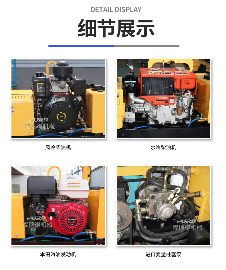 主要用于沟渠基础,道路,体育场地的压实整平,也可用于压实沥青表面的作业。