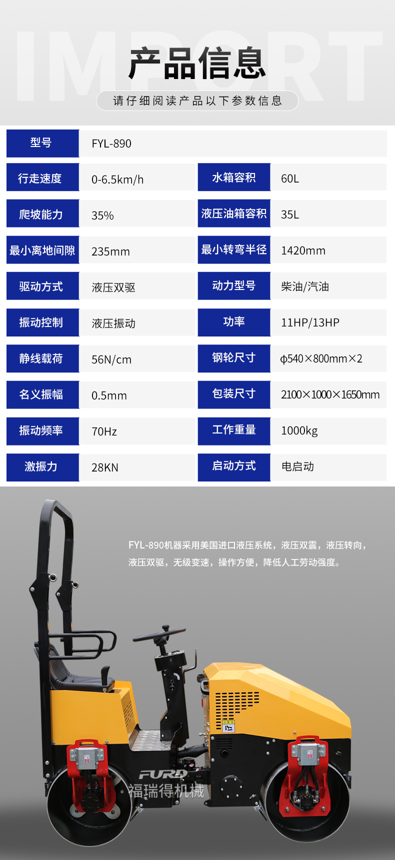 主要用于沟渠基础,道路,体育场地的压实整平,也可用于压实沥青表面的作业。