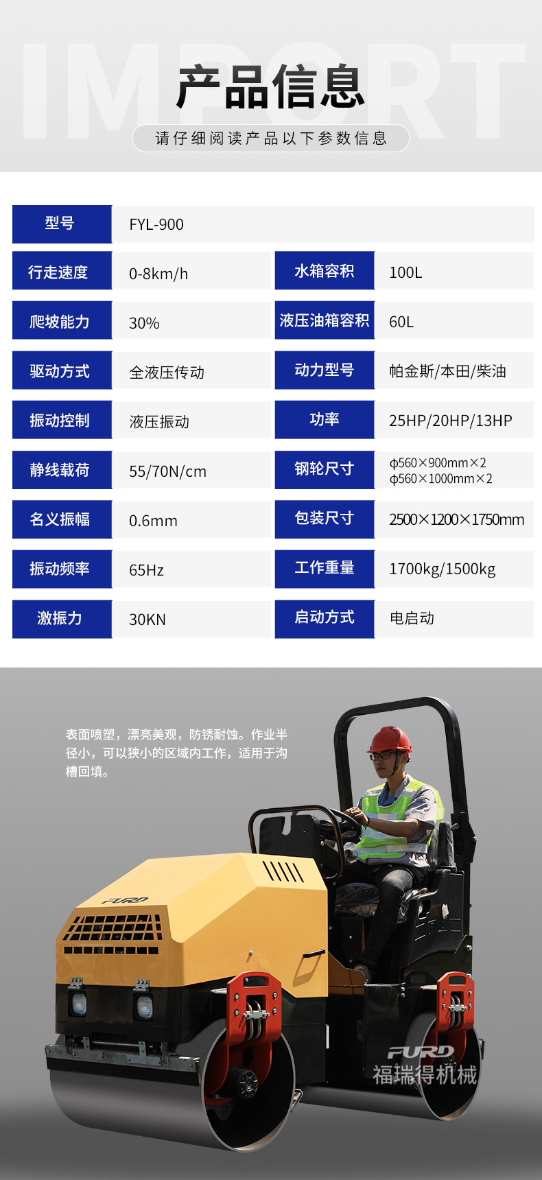 FYL-900 1.7T全液压振动压路机,小型压路机