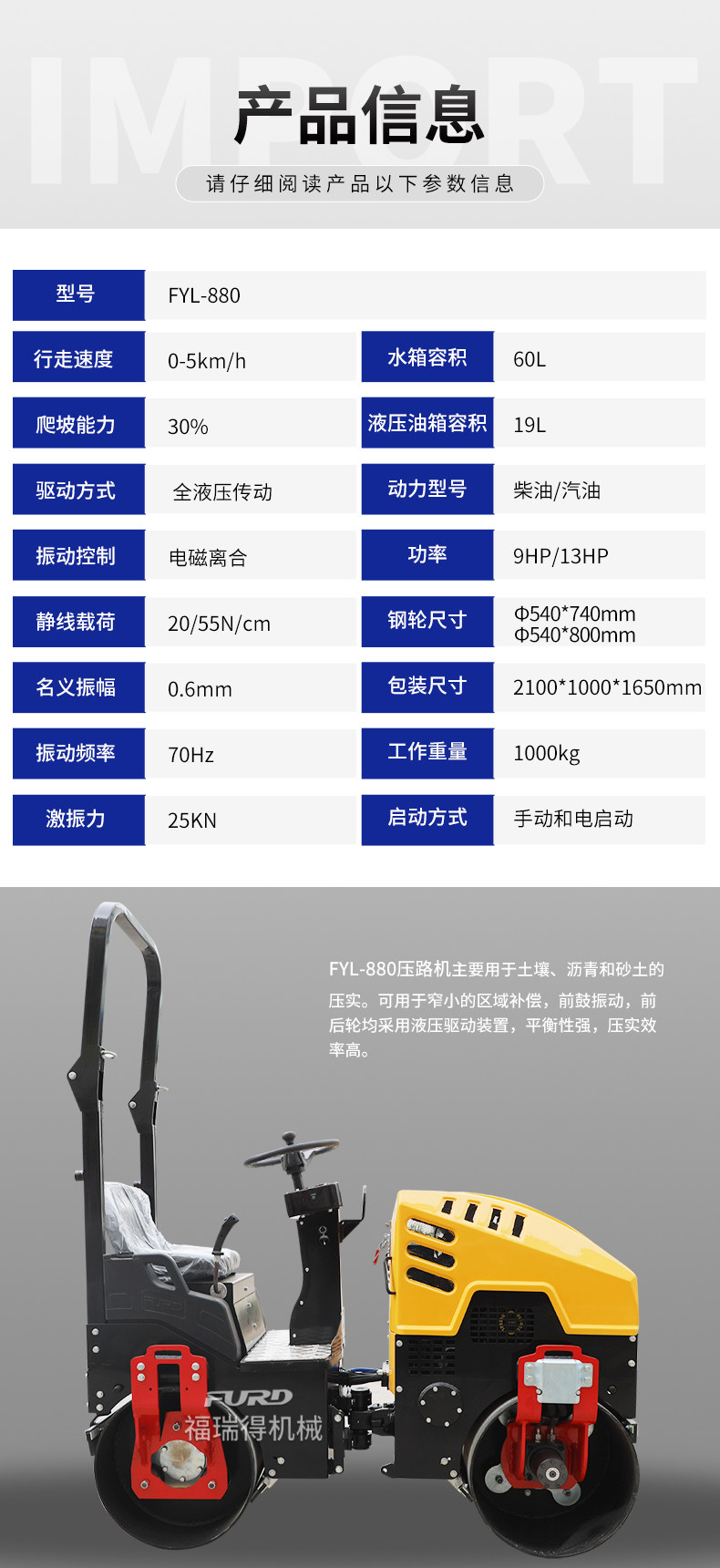 FYL-880 1T液压振动压路机