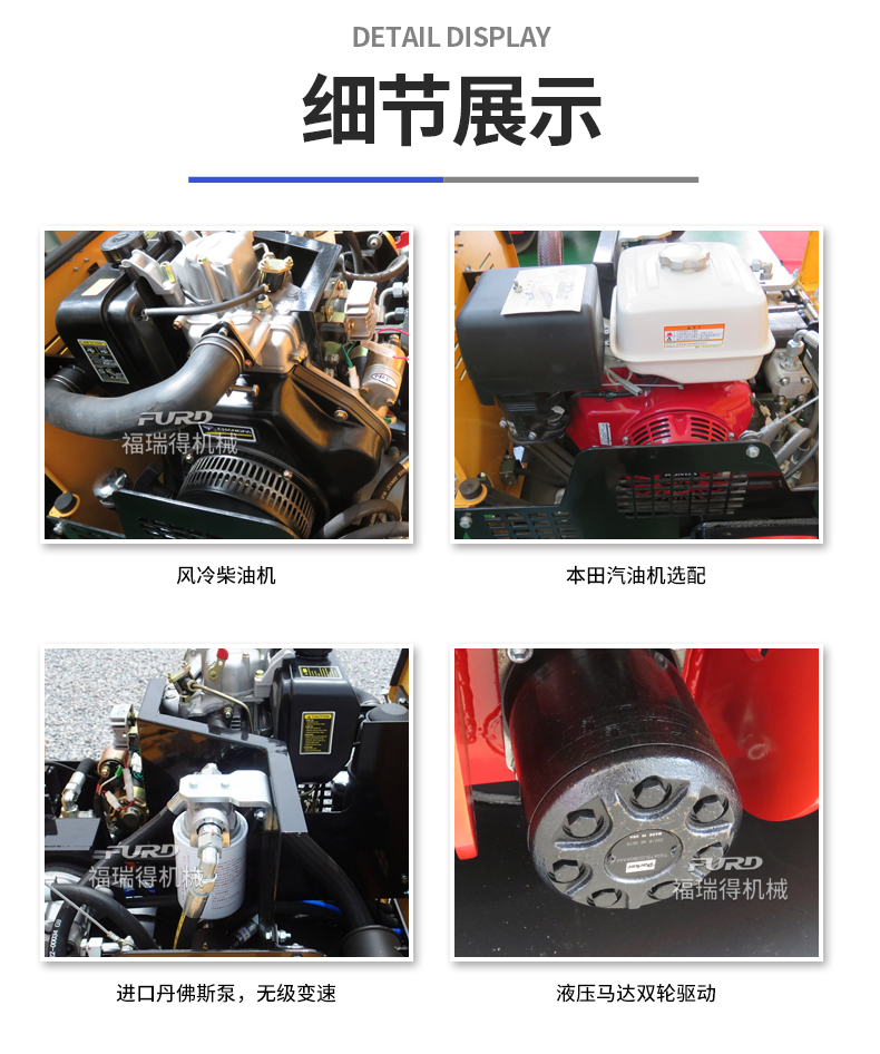 主要用于沟渠基础,道路,体育场地的压实整平,也可用于压实沥青表面的作业。