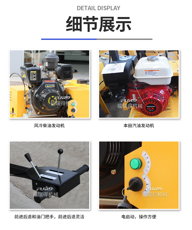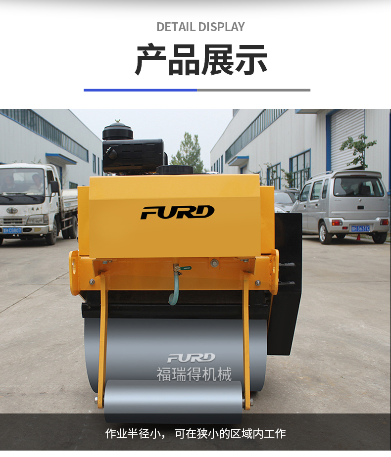 主要用于沟渠基础,道路,体育场地的压实整平, 也可用于压实沥青表面的作业。