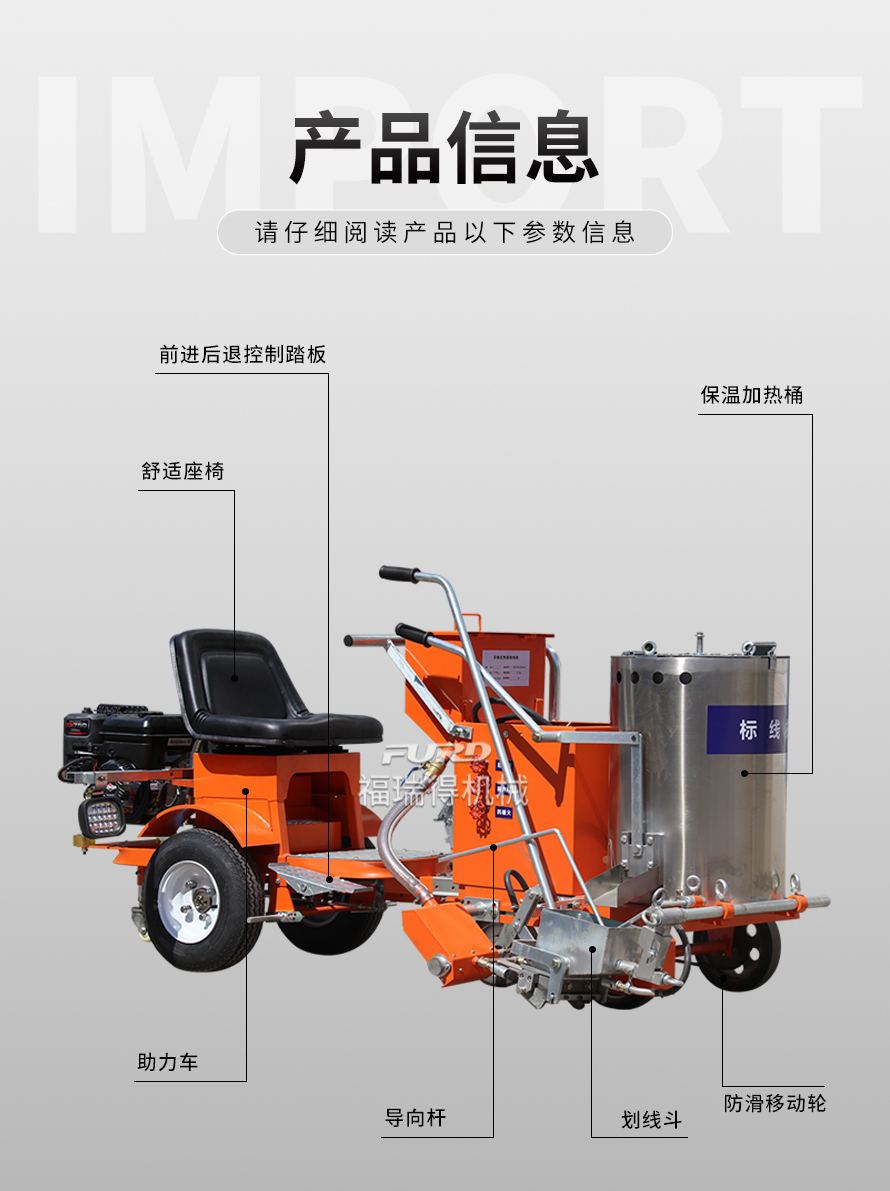 应用于道路、高速公路、停车场、广场和跑道的在平整地面上划出不同约速、指引和警示等规则限制标志的路面施工机械。
