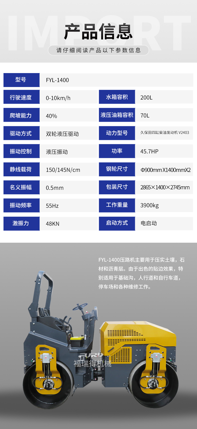 FYL-1400  4吨全液压座驾双钢轮压路机
