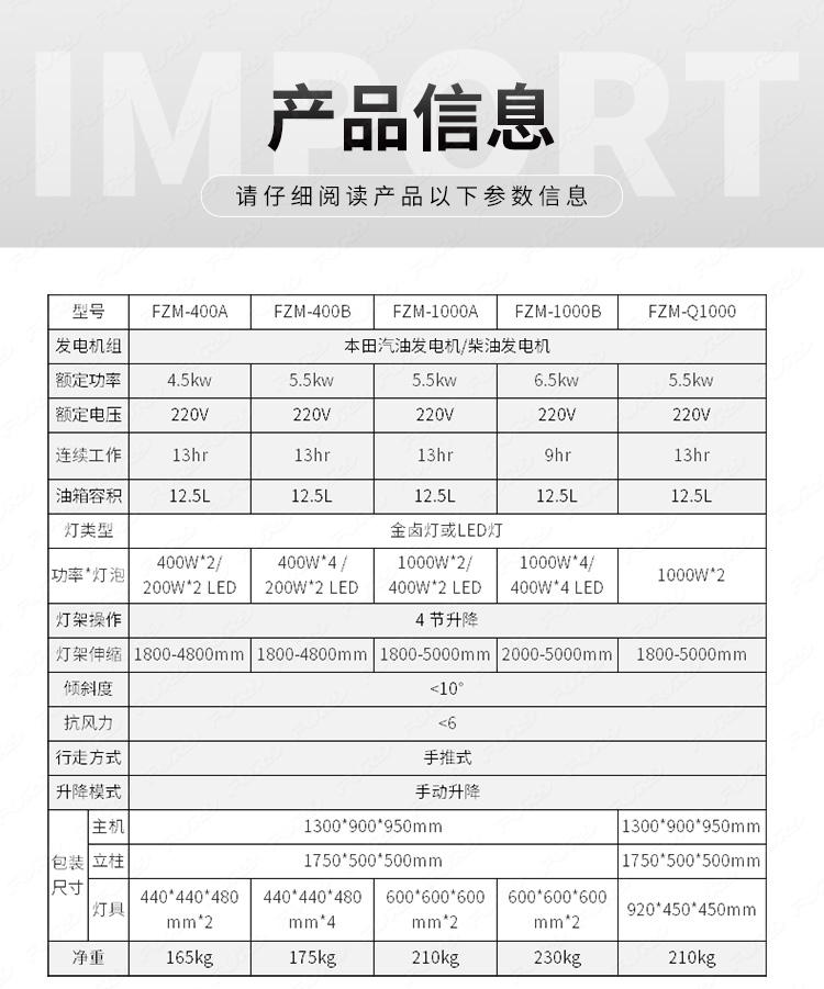 FZM-1000B 5米可升降移动工程照明灯车