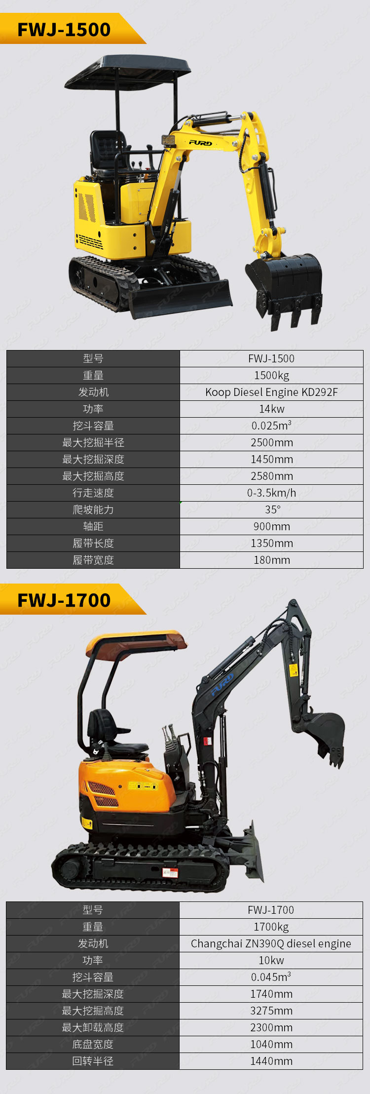 FWJ-1500  1.5吨小型挖掘机