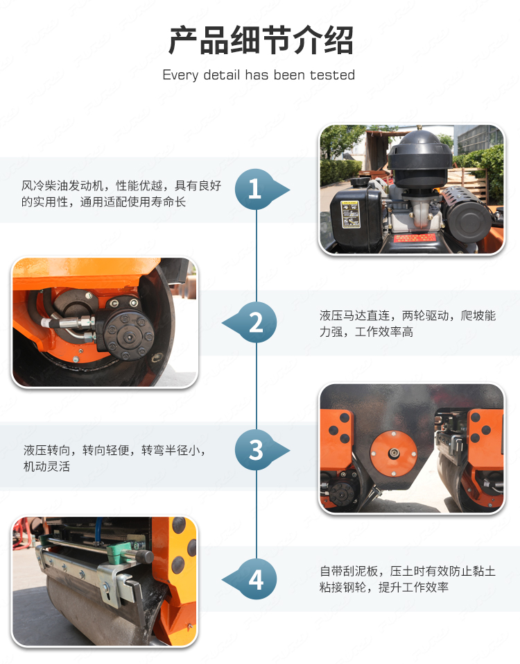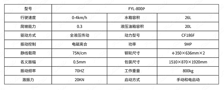 FYL-800是800kg液压转向压路机,采用重型变量柱塞泵,液压马达驱动变速行走,电磁离合器振动。