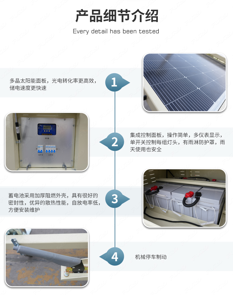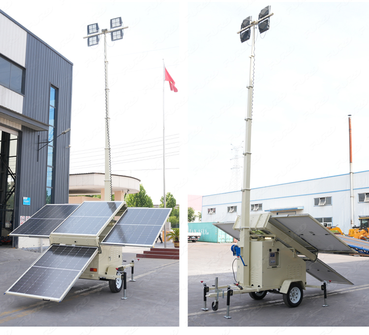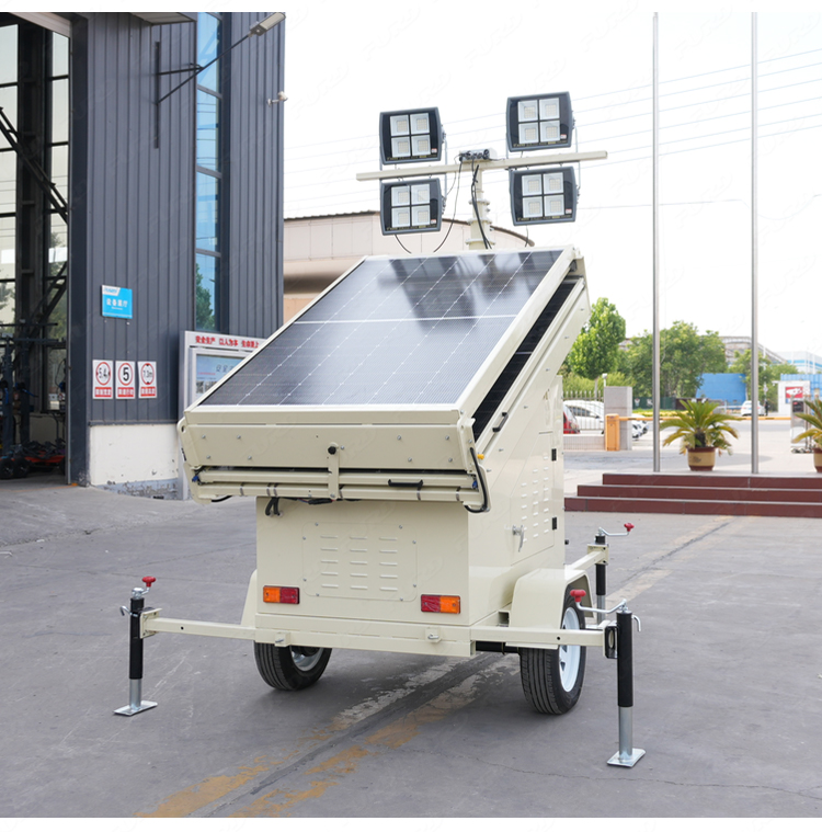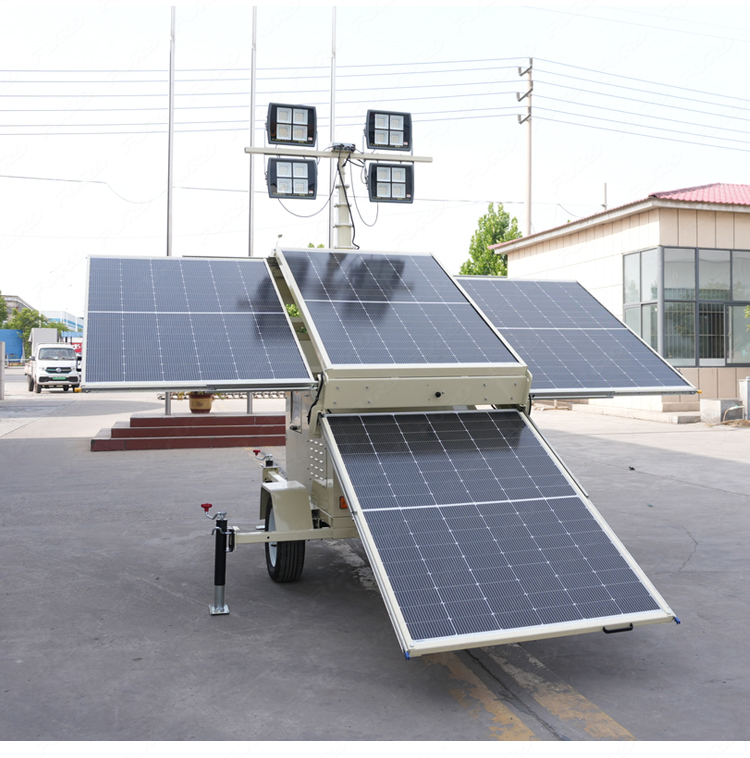 我们开发了一种新产品,叫做太阳能光塔,它的设计理念是节能环保。它可以长时间部署在偏远地区,并由太阳能自行供电。它通过可调节的太阳能电池板自动充电,运行干净,安静,高效。